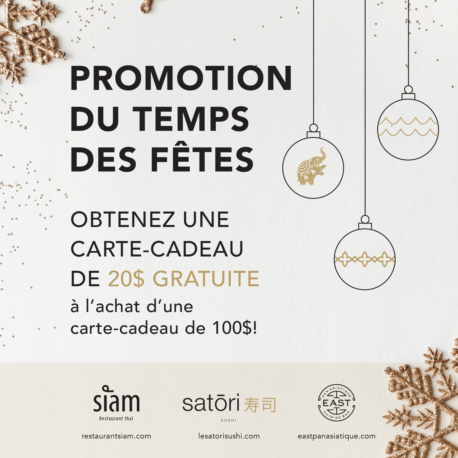 From December 1st to 31st, 2025, get a $20 bonus when you purchase a $100 gift card. Offer valid online or in restaurant.